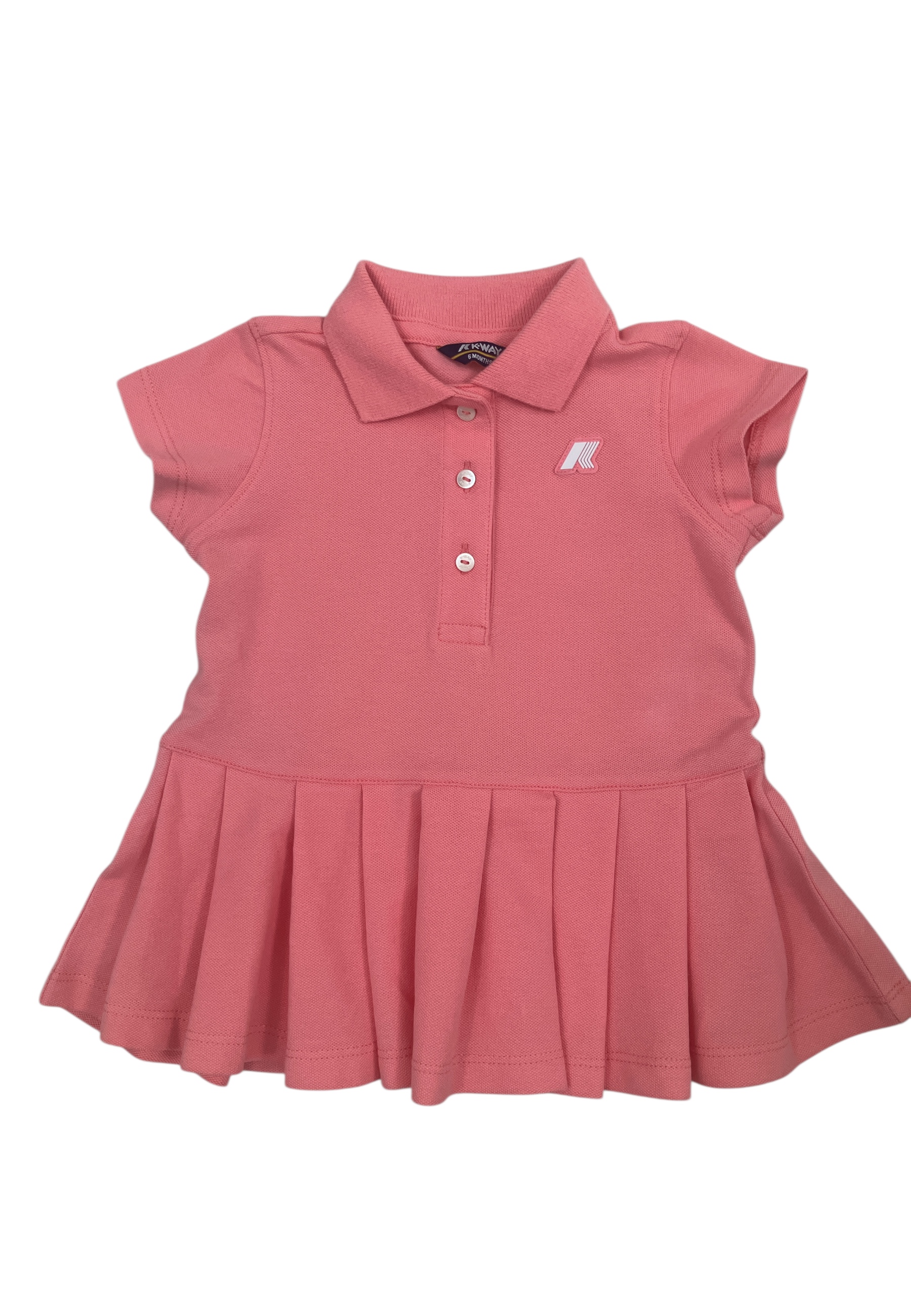 Dollie è un abito corto per neonata e bimba ispirato all'abbigliamento da tennis, un capo sportivo e romantico per completare il guardaroba estivo dei più piccoli. Realizzato in piqué di cotone fresco e traspirante, ha una linea svasata con maniche corte, colletto a polo e gonna a pieghe.