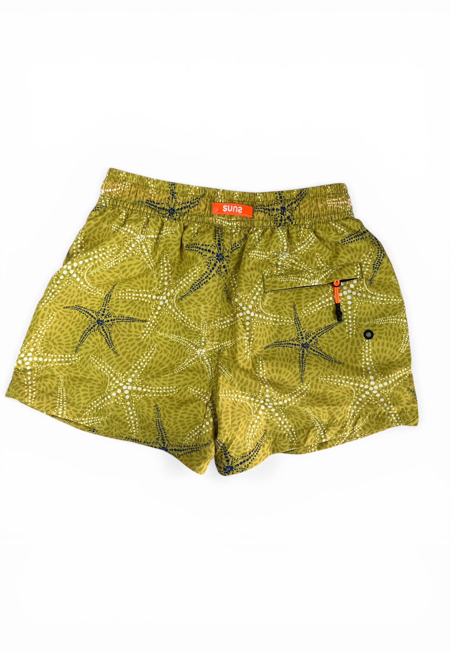 Dotato di tasche laterali a filetto e retina interna per un supporto ottimale, il modello presenta una stampa anteriore e posteriore ed è completato da una tasca posteriore con chiusura a zip per riporre piccoli oggetti in sicurezza. Il tessuto morbido ad asciugatura rapida lo rende ideale sia per il mare che per il tempo libero.