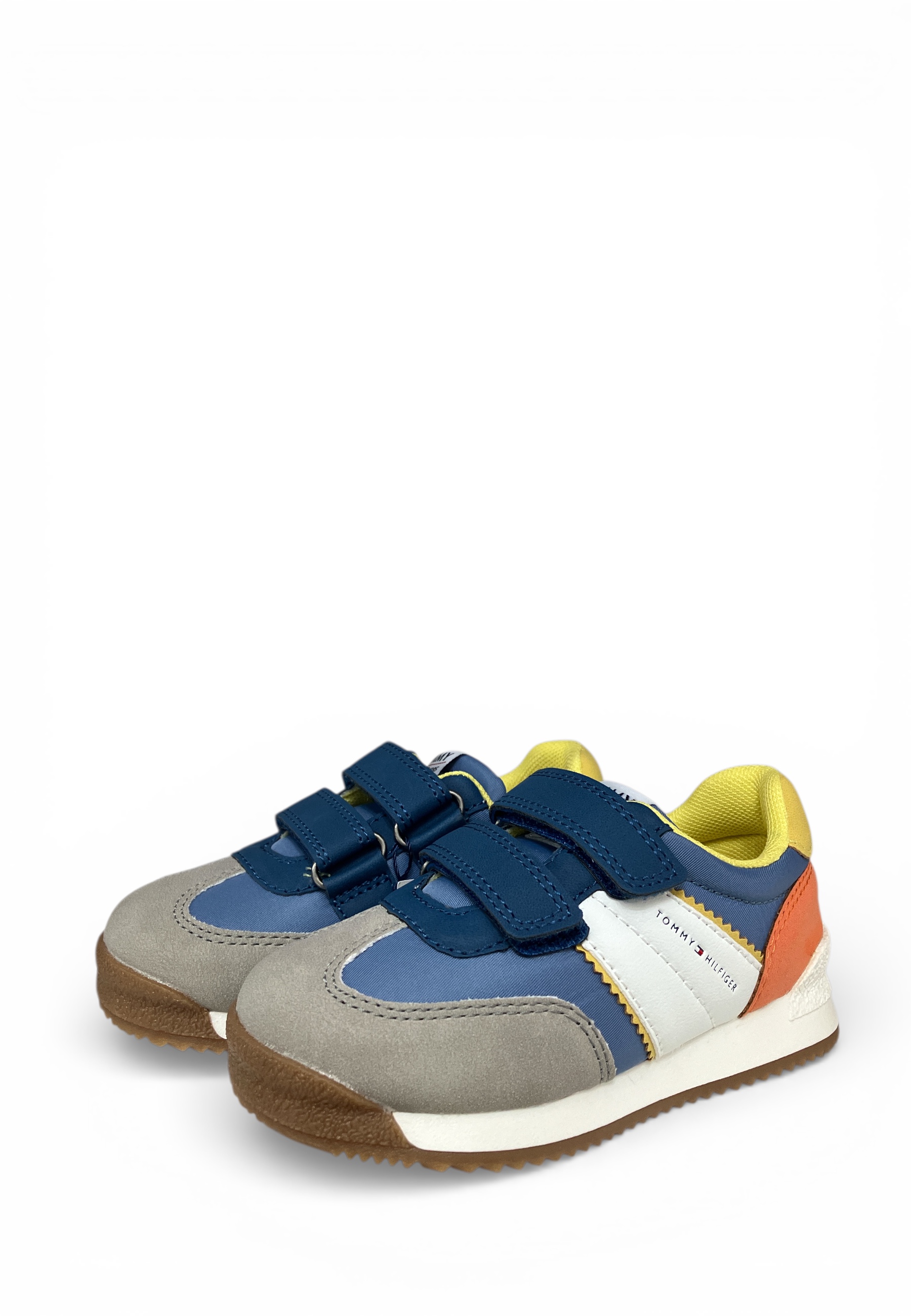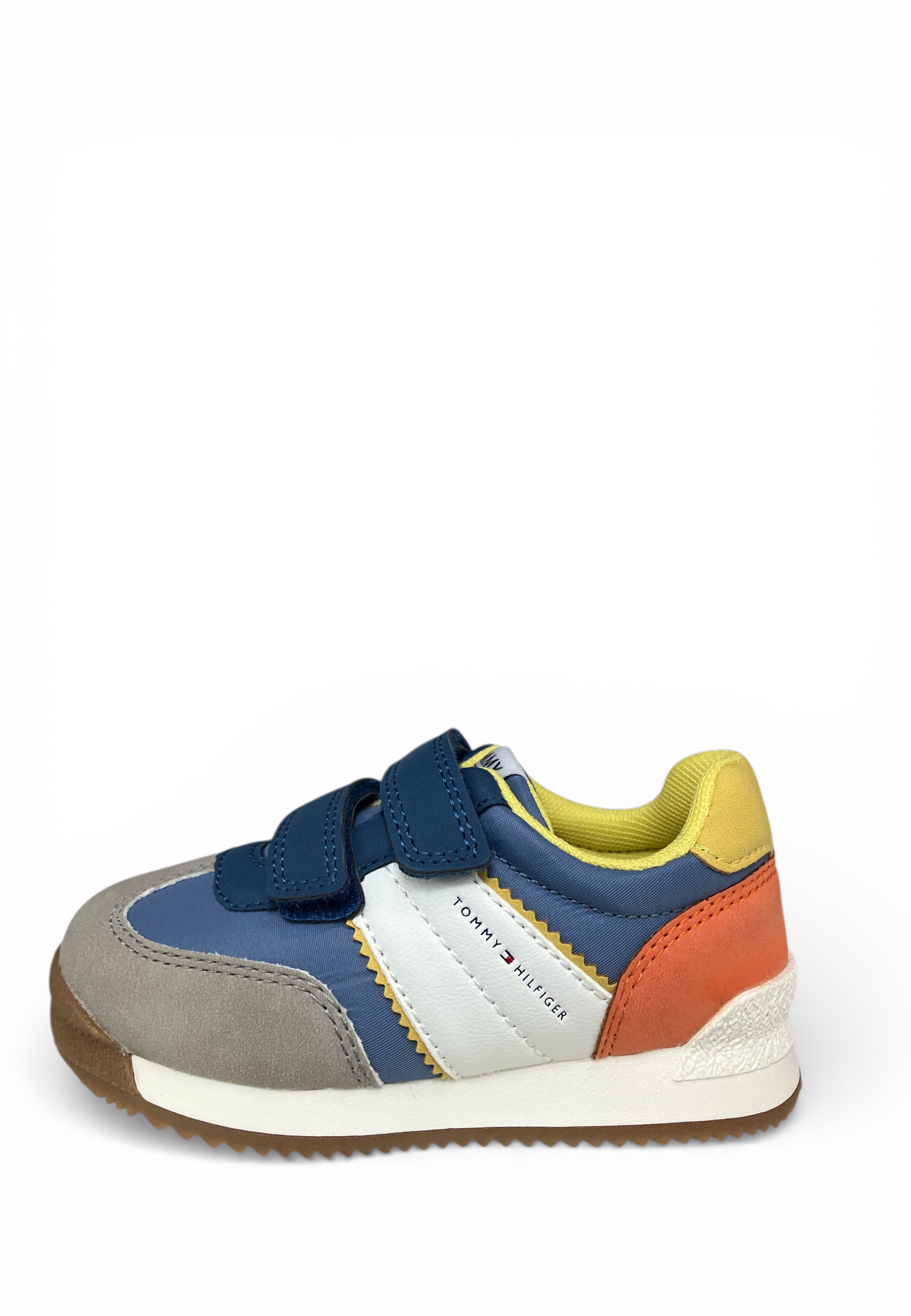 Sneakers bimbo in ecopelle e tessuto.